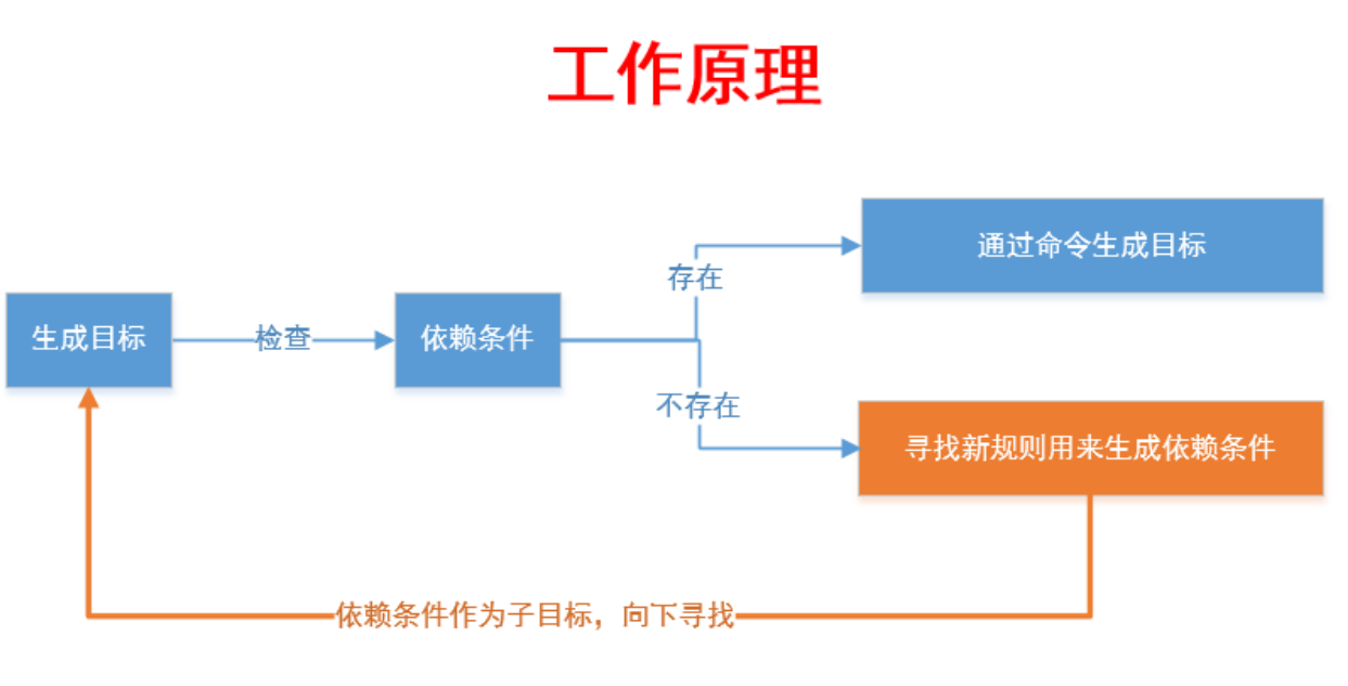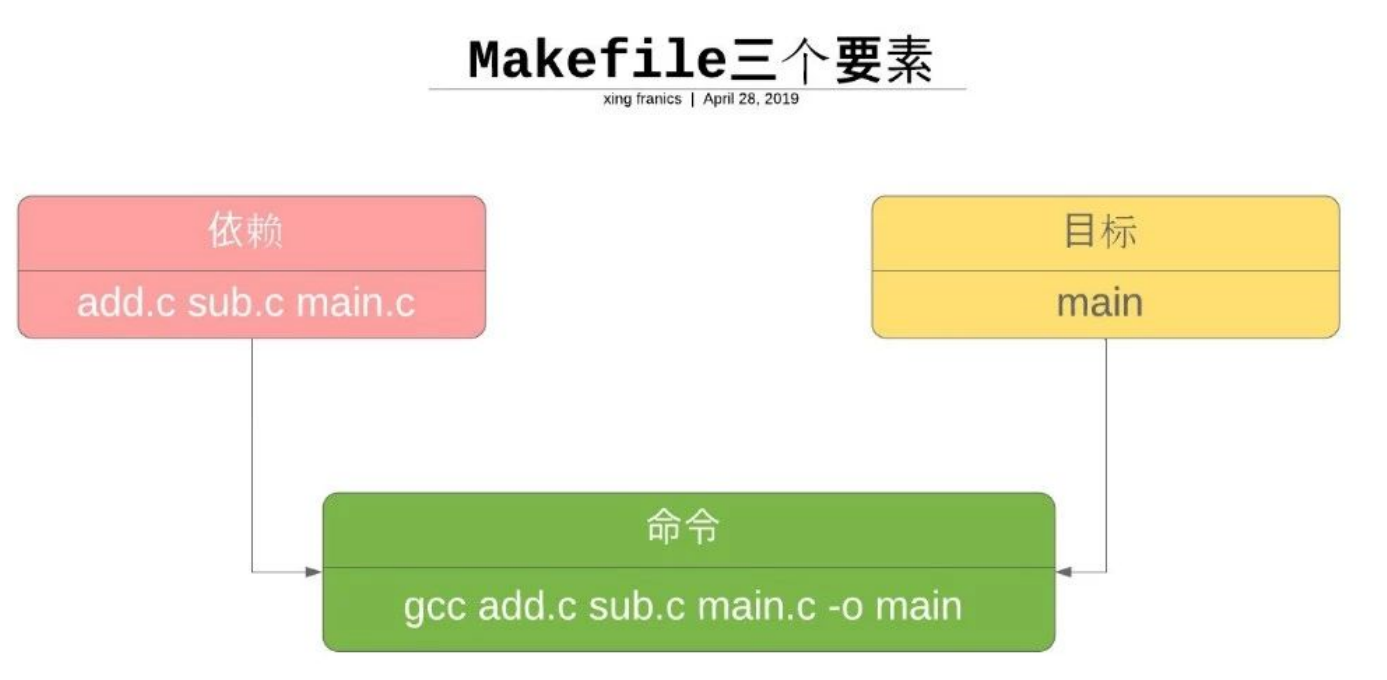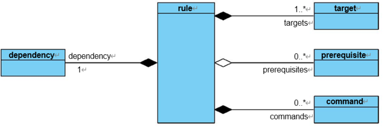 想要掌握makefile,首先需要了解两个概念,⼀个是⽬标(target),另⼀个就是依赖(dependency)。⽬标就是指要⼲什么,或说运⾏ make 后⽣成什么,⽽依赖是告诉 make 如何去做以实现⽬标。在 Makefile 中,⽬标和依赖是通过规则(rule)来表达的。