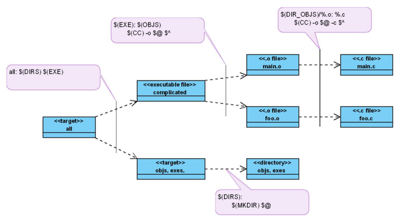 分析一下第一次make出现异常的原因,下图是makefile所表达的依赖关系书以及规则的映射关系图。