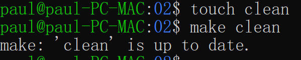 如上图,如果我们的创建了一个clean文件之后,继续去运行make clean,这时候不是按照我们前面运行的make clean进行清理文件。