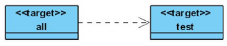 如上, all 是⽬标,test 是 all ⽬标的依赖⽬标,⽽@echo “Hello World”则是⽤于⽣成 all ⽬标的命令。