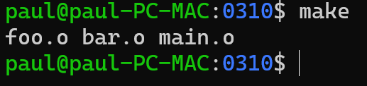 从依赖关系图中可以发现,其中并没有出现对 foo.h 的依赖关系,这就是为什么我们改动头⽂件时,make ⽆法生效的原因!所以我们需要在构建目标的规则中增加对于foo.h的依赖。这里我们需要使用自动变量 $< 。这个变量与$的区别是,其只表示所有的先决条件中的第⼀个,⽽$则表示全部先决条件。之所以要⽤$<是因为,我们不希望将 foo.h 也作为⼀个⽂件让 gcc 去编译,这样的话会出错。
