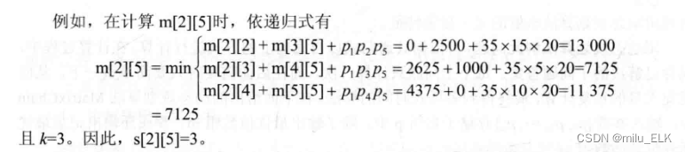例如,计算三个矩阵连乘{A1,A2,A3};维数分别为10×100 , 100×5 , 5×50 按此顺序计算需要的次数((A1A2)A3):10X100X5+10X5X50=7500次,按此顺序计算需要的次数(A1(A2A3)):10X100X50+100X5X50=75000次。