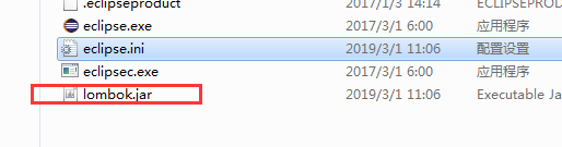 6、安装完成之后,请确认eclipse安装路径下是否多了一个lombok.jar包,并且其