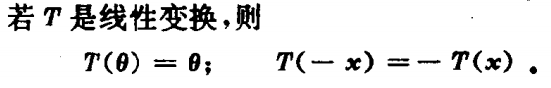 线性变换的性质:1、T(0)=0;2、T(-x)=-T(x);
