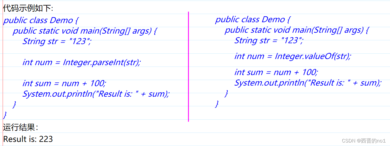 方法b、i=Integer.valueOf(s).intValue(); 如下右侧的示例代码。