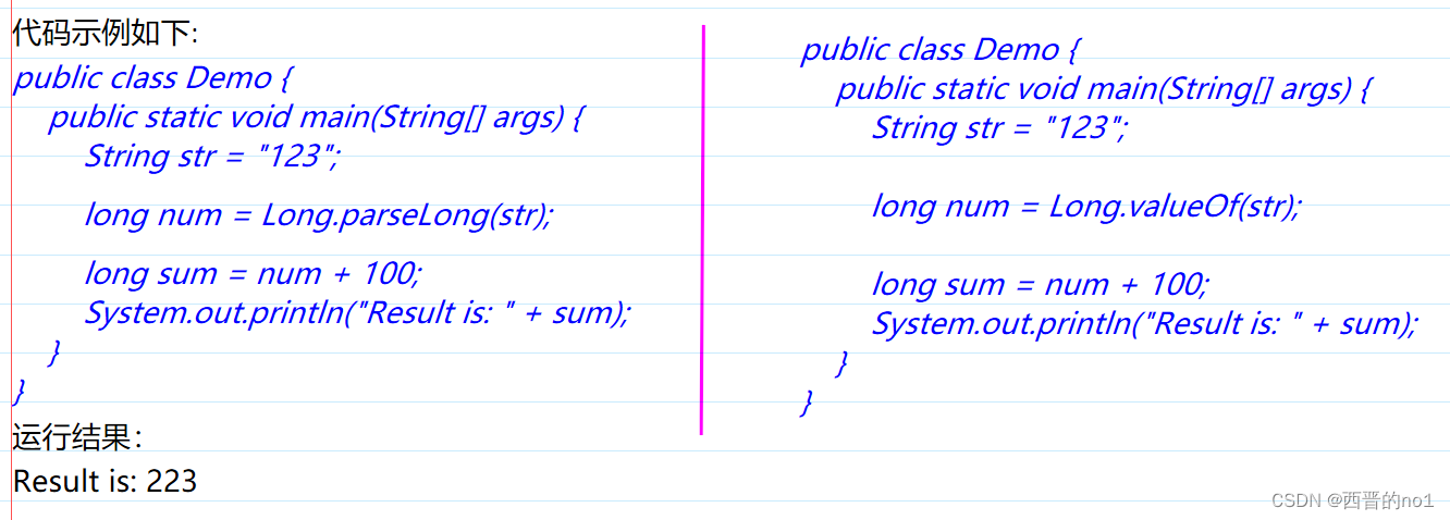 2、转化为long型数字 Long.parseLong(String s) Long.valueOf(String s);