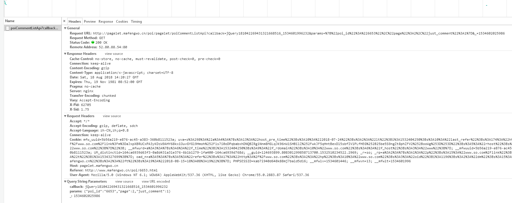 http://pagelet.mafengwo.cn/poi/pagelet/poiCommentListApicallback=jQuery181042269431321668516_1534601996232¶ms=%7B%22poi_id%22%3A%226653%22%2C%22page%22%3A2%2C%22just_comment%22%3A1%7D&_=1534602025986