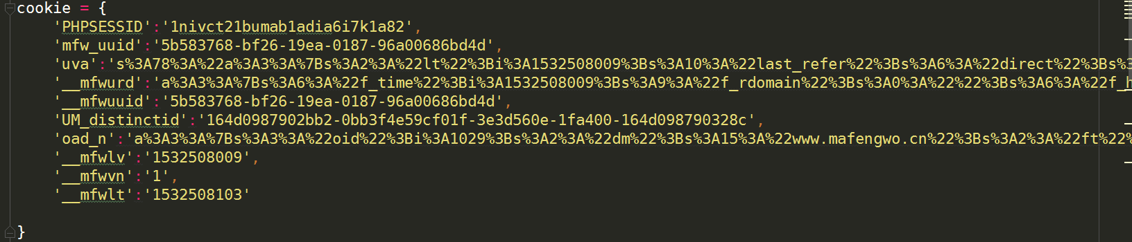 再将Request Headers下的cookies中由;分隔的内容同样整理成一个叫做cookies的字典如下: