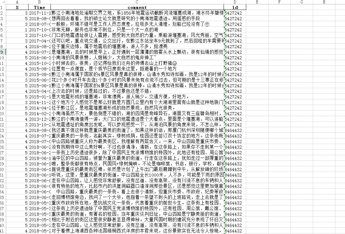 最终得到的评论数据集格式如下: