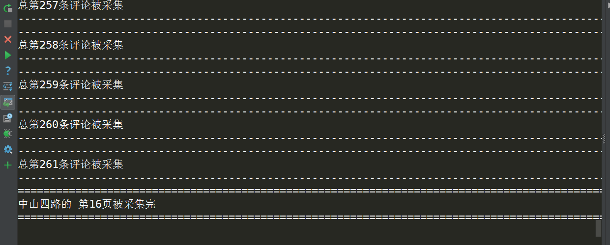 import re from bs4 import BeautifulSoup obj = BeautifulSoup(html,'lxml') # # '''利用findAll定位目标标签及其属性并返回其字符形式结果''' text = list(obj.findAll('p', {'class': "rev-txt"})) star = list(obj.findAll('span')) Time = list(obj.findAll('span', {'class': "time"})) #将每一条评论对应的内容提取出来 control = 0 for m in range(len(star)): try: if 'star' in str(star[m]): '''设置不同的正则规则来提取目标内容''' print(re.findall('[0-5]+', str(star[m]))[0]) print(re.sub('[a-zA-Z="-<> /nr]+', '', str(text[control]))) print(re.findall('<.*?>(.*?)<.*?>',str(Time[control]))[0]) control += 1 except Exception as e: print('error')