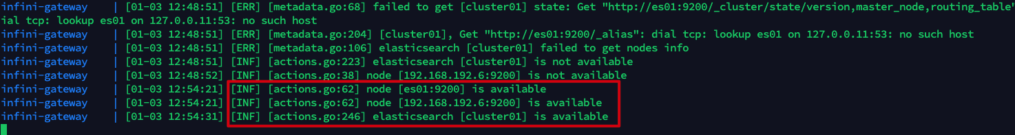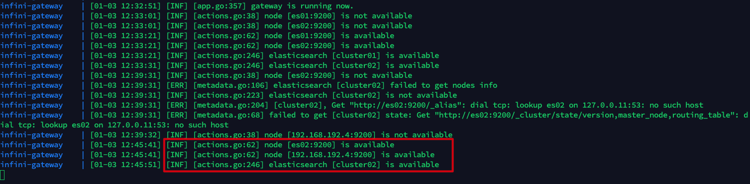 查看网关日志可以看到集群 cluster01 恢复的信息。