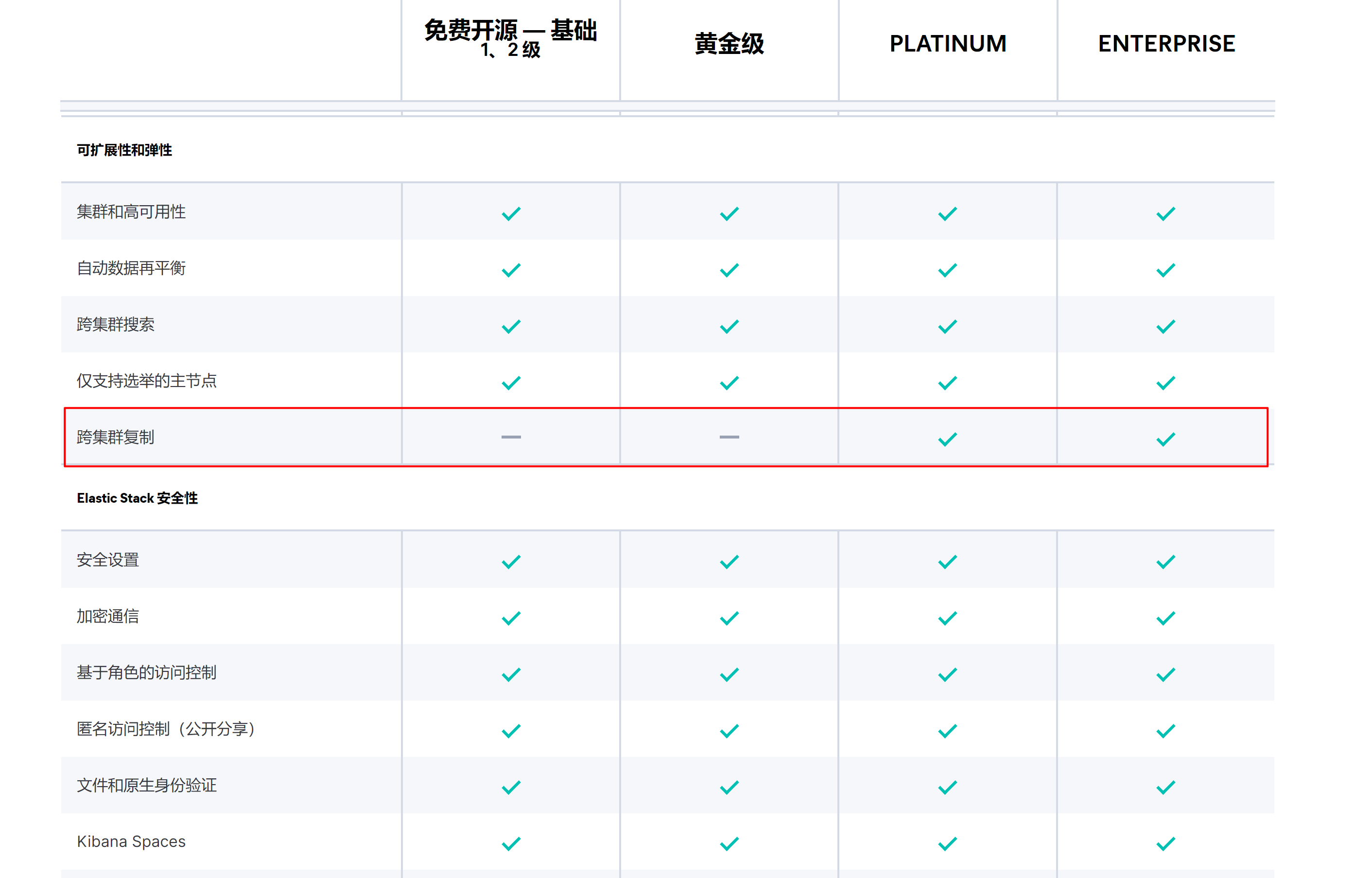 Elasticsearch 6.7 版本中引入跨集群复制(CCR, Cross-Cluster Replication)功能,支持将指定的索引从一个 Elasticsearch 集群复制到一个或多个 Elasticsearch 集群。跨集群复制属于 Elastic Stack 的白金版(PLATINUM)付费功能,需要额外付费才可以使用,关于 Elastic Stack 订阅模式参见 Elastic Stack 订阅。