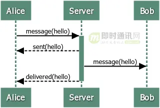 这个消息会像一个普通聊天消息一样被服务器处理,最终发送给Alice。