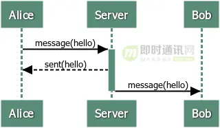 1)向Alice发送一个sent(hello)表示消息已经被发送到服务器: