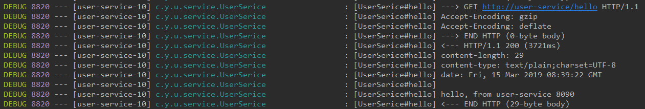 user-service设置Thread.sleep(),如上文,延迟超过2000的请求,会再进行重试