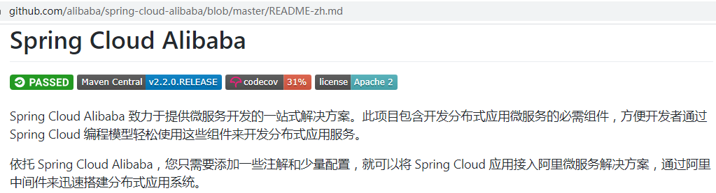 中文:spring-cloud-alibaba/README-zh.md at 2.2.x · alibaba/spring-cloud-alibaba · GitHub