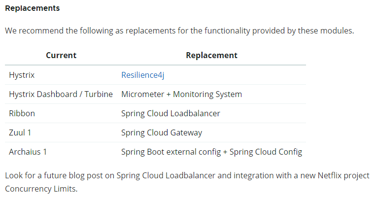 SpringCloud Netflix 的项目进入维护模式,技术停止更新,不再开发新的组件。