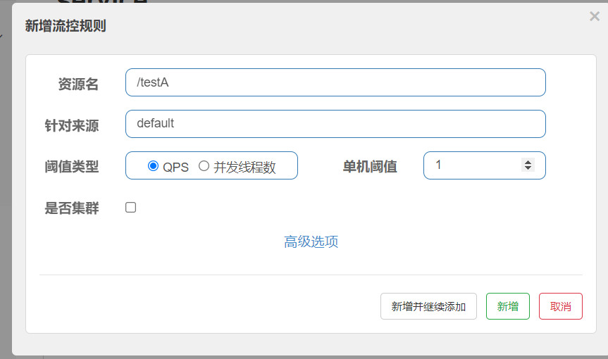2. 根据资源名称配置流控规则,一秒钟不能超过一次