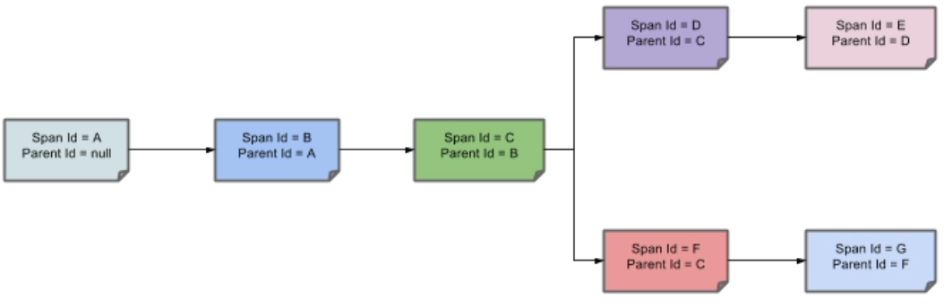 一条链路通过Trace Id唯一标识,Span标识发起的请求信息,各span通过parent id 关联起来。