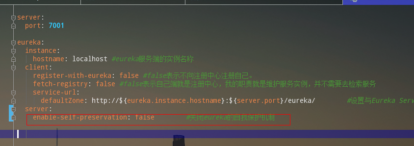 由于本地调试很容易触发注册中心的保护机制,这会使得注册中心维护的服务实例不那么准确。所以,我们在本地进行开发的时候可以使用eureka.server.enabke-self-preservation=false参数来关闭保护机制,以确保注册中心可以将不可用的实例正确的剔除。