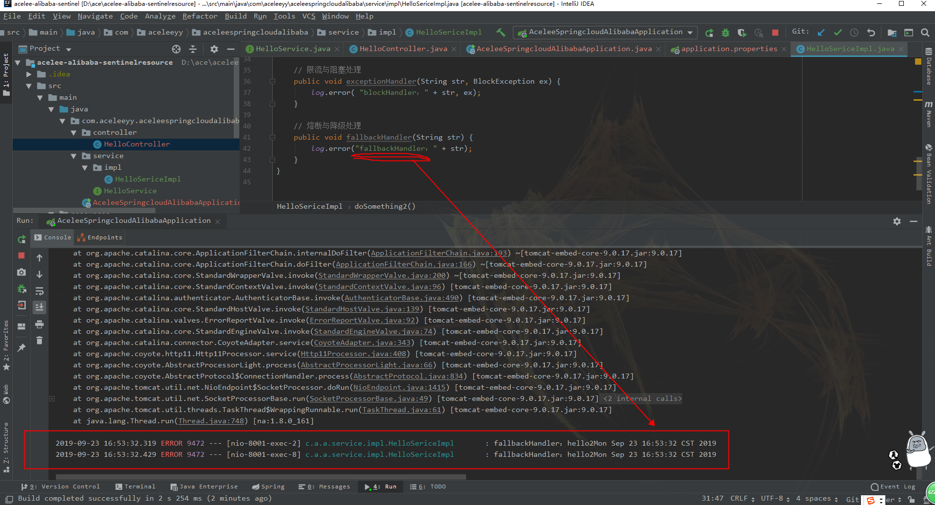 @SentinelResource(value = "doSomething2", fallback = "fallbackHandler")