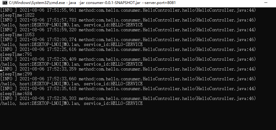 logger.info("/hello, host:" + instance.getHost() + ", service_id:" + instance.getServiceId());