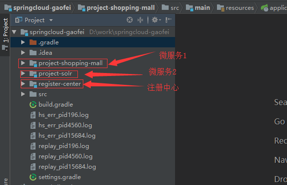 这里的project-solr是配置里每个服务注册到注册中心的名字,根据名字调用服务的ip地址,可以实现动态微服务调用效果,它不会因为更换电脑而出错