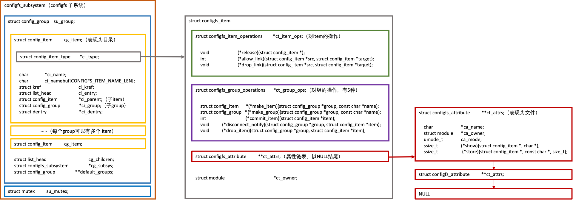 为了理解代码,我们首先整理一下 configfs 中的层级结构: