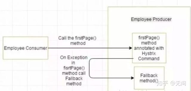 由于某些原因,employee-consumer 公开服务会引发异常。在这种情况下使用 Hystrix 我们定义了一个回退方法。如果在公开服务中发生异常,则回退方法返回一些默认值。
