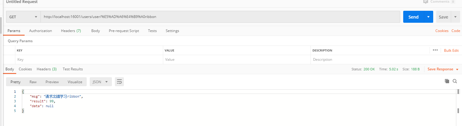 third服务 接口Thread.sleep(1分钟) 然后再次调用--测试ribbon超时