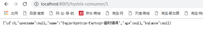 结论:该http://localhost:8005/hystrix-consumer/1 请求 超时后,执行了hystrix编写的逻辑处理,该http://localhost:8005/hystrix-consumer2/1 请求超时后,因为禁用了默认的hystrix,直接页面报错。