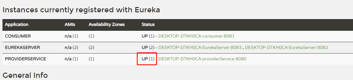 先正常启用Eureka和provider,测试如下: