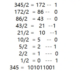 整数部分为从下往上101011001(小数部分为从上往下)