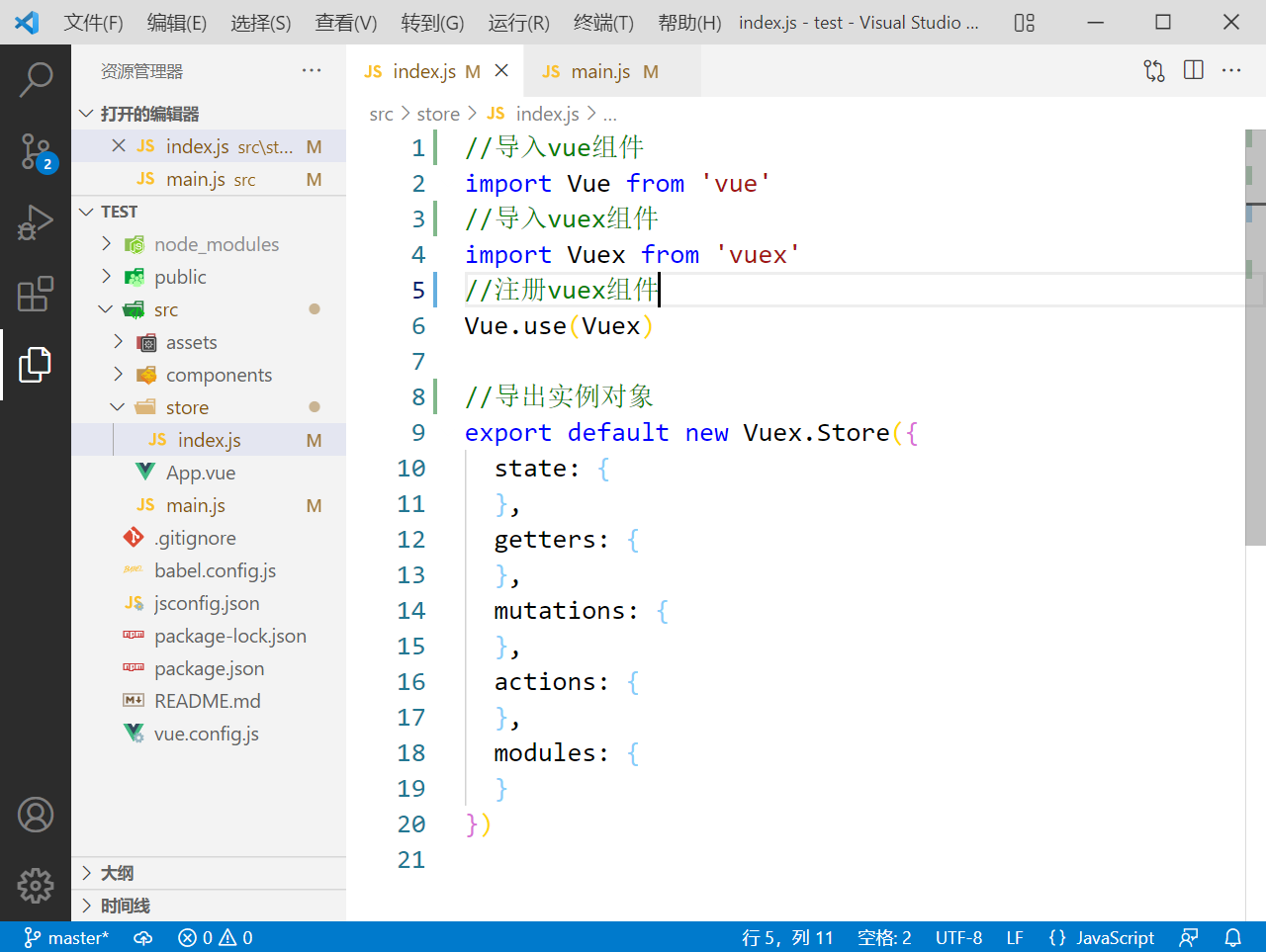 //注册vuex组件