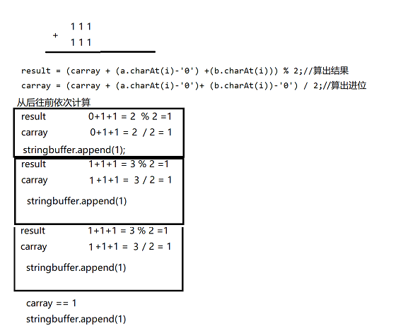 result = (carray + (a.charAt(i)-'0') +(b.charAt(i))) % 2;//算出结果