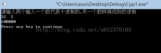 cout<<"请输入两个输入一个数代表十进制的,另一个数转换成别的进制"<<endl;