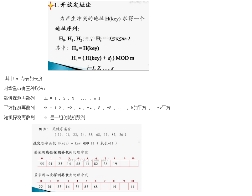 哈希函数处理冲突的方法: