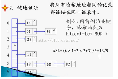 这种方法的基本思想是将所有哈希地址为i的元素构成一个称为同义词链的单链表,并将单链表的头指针存在哈希表的第i个单元中,因而查找、插入和删除主要在同义词链中进行。链地址法适用于经常进行插入和删除的情况。
