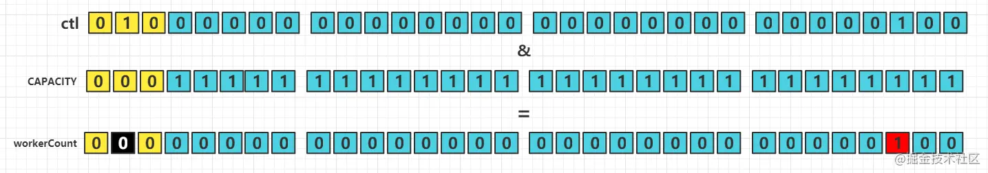 要获取高位的runState则使用ctl的值c和容量(也就是2^29-1)取反做与运算;