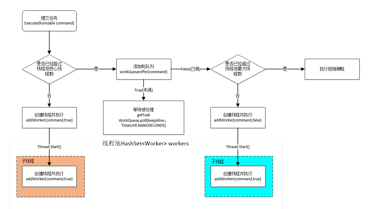 当一个线程池得到任务,它会根据以下步骤进行执行: