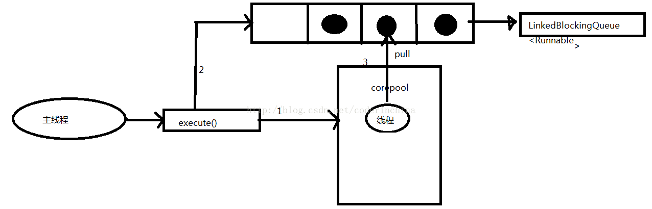 1:线程池判断核心线程池里的线程是否都在执行.如果不是,则创建一个新的工作线程来执行,如果核心线程池里的都在执行任务,则进入第二步: