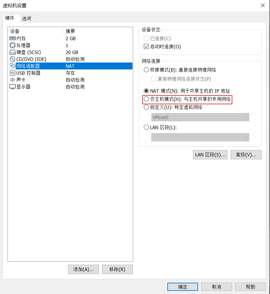 1.2 Vmware设置仅host模式