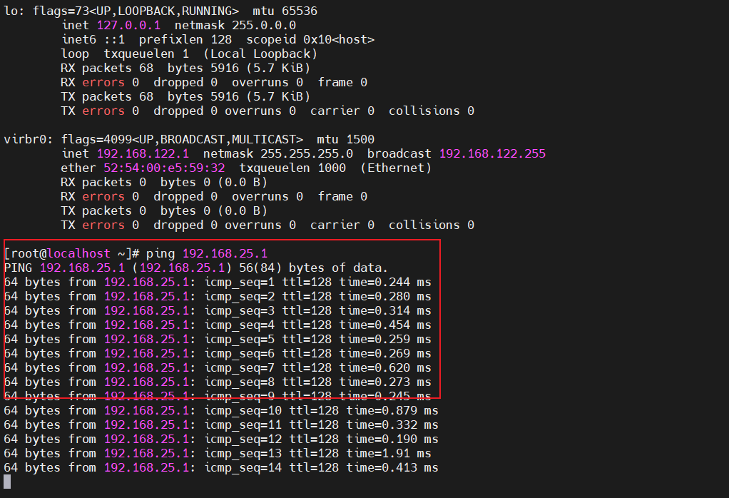 测试结果:物理主机 Ping 虚拟机