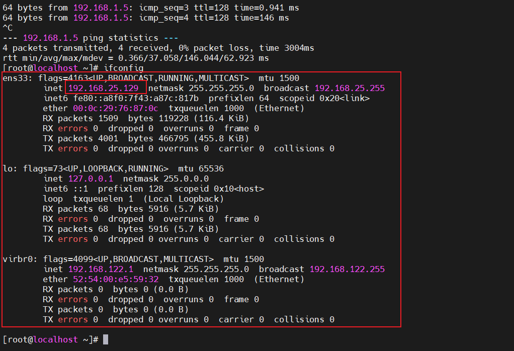 虚拟机(Linux) IP信息 :