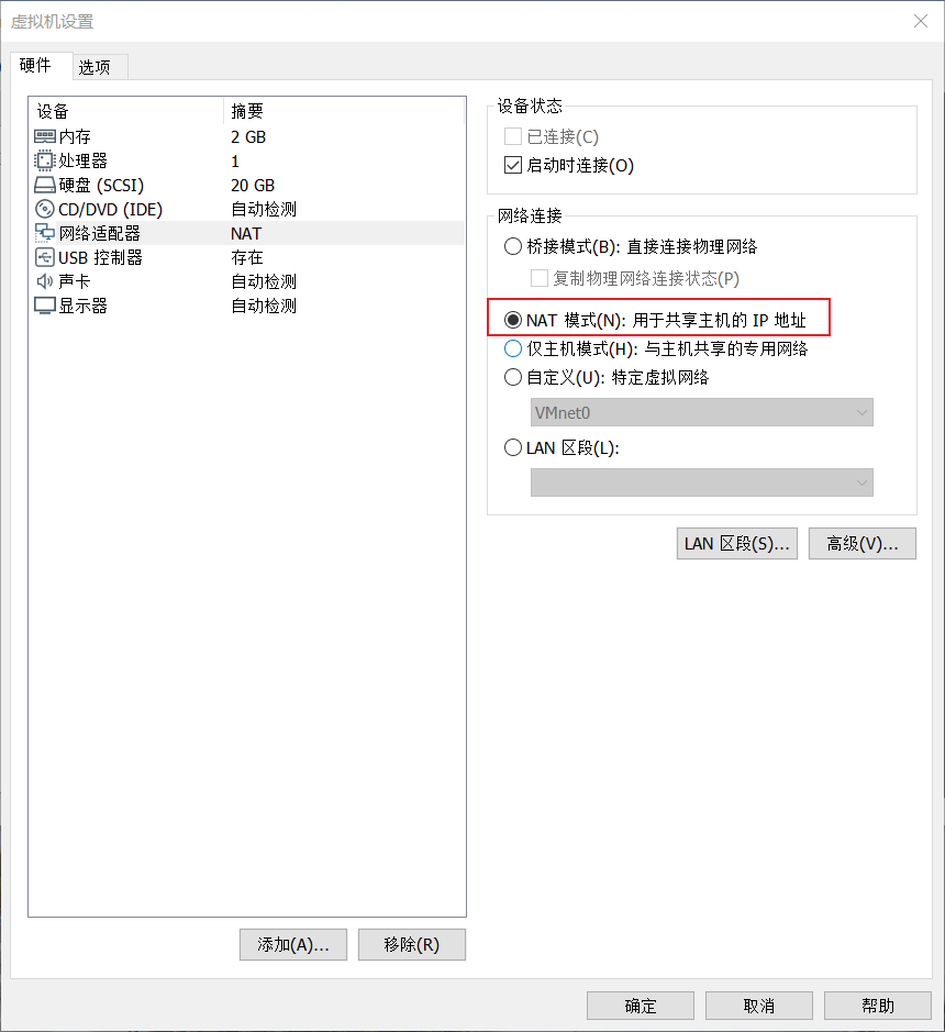 3.3 设置NAT模式