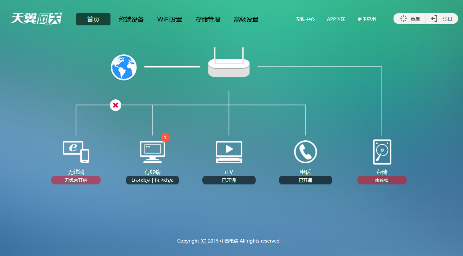 以上就是深情雪糕最近收集整理的关于电信光纤天翼网关将默认的路由模式修改为桥接模式的全部内容,更多相关电信光纤天翼网关将默认内容请搜索靠谱客的其他文章。