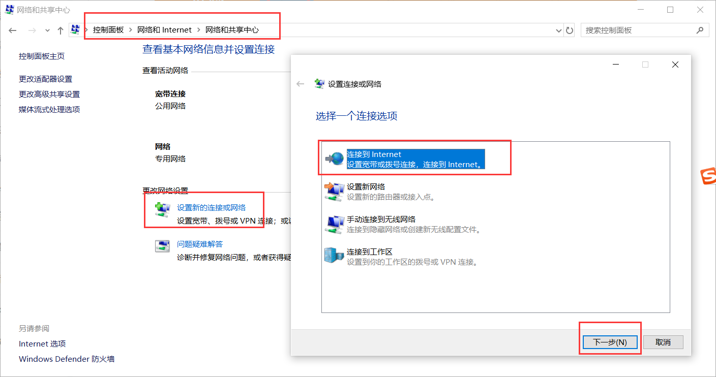 上网的模式修改为桥接模式之后,在电脑上使用拨号连接测试下,win10系统通过控制面板,设置拨号上网,如下所示: