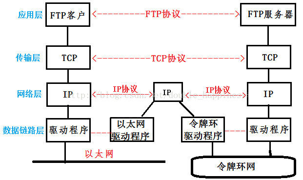 数据从一台主机通过一定的路径发送到另外一台主机上时,每层的协议栈上面都要加上相应的该层协议的报头,对有效数据包进行封装,具体的TCP/IP数据包封装过程如下图所示: