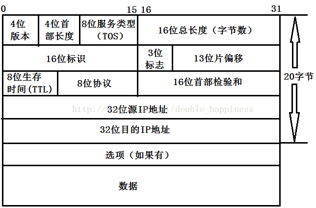 ●可选项字段:占32比特。用来定义一些任选项:如记录路径、时间戳等。这些选项很少被使用,同时并不是所有主机和路由器都支持这些选项。可选项字段的长度必须是32比特的整数倍,如果不足,必须填充0以达到此长度要求。