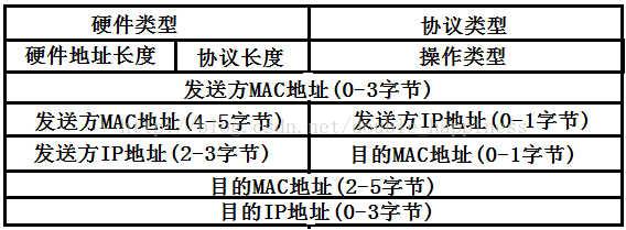 08 0006 0400 0100 05 5d 61 58 a8c0 a8 00 37//协议类型0800表示为IP地址;op为0x0001表示请求;